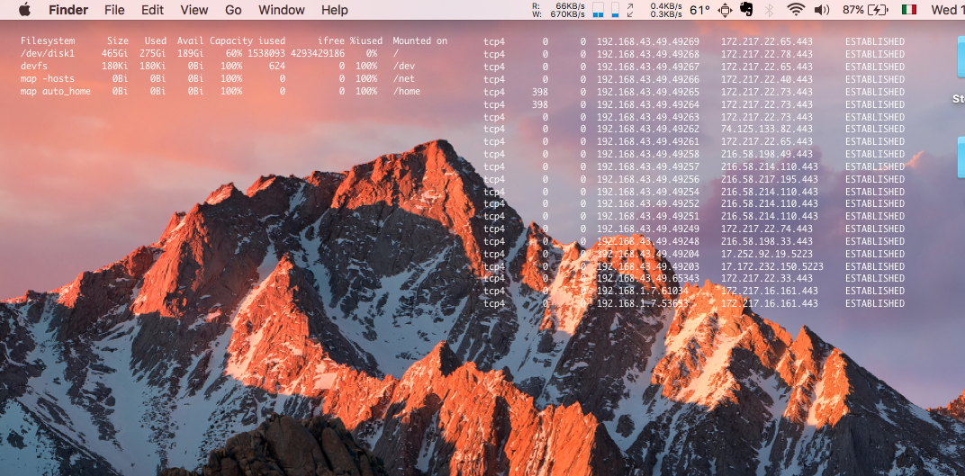 La soluzione che vi propongo oggi risulta molto elegante visivamente e vi permette di monitorare costantemente tutte le connessioni attive sul vostro Mac. Per ottenere lo stesso risultato in foto, occorre combinare assieme due strumenti: comando bash + app (gratis).